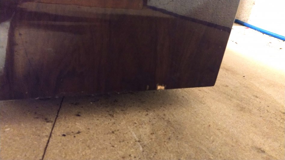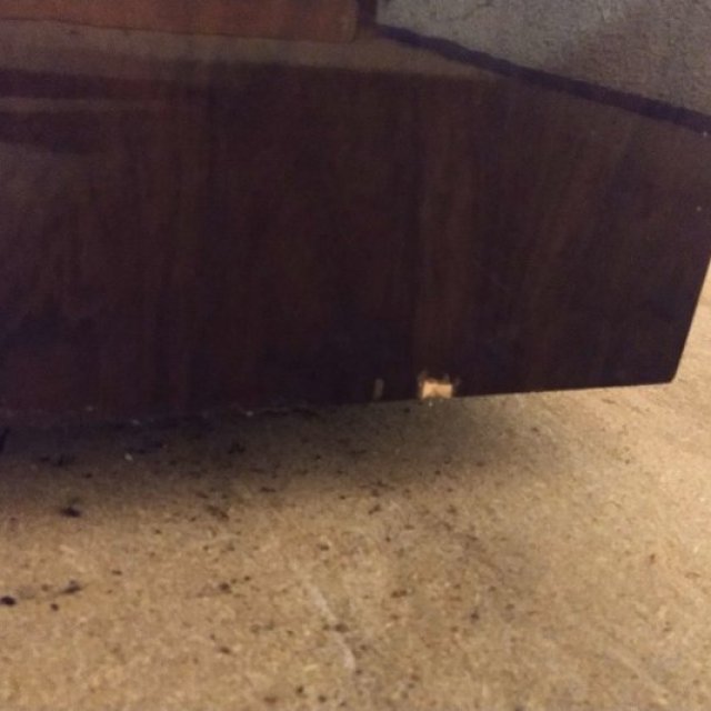 Plaquage légèrement abîmé sur le base des 2 flancs.